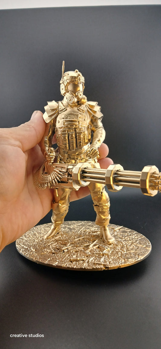 Gold painted Large Gatling Gun Solider 155mm l, 110 mm w, 185 mm H